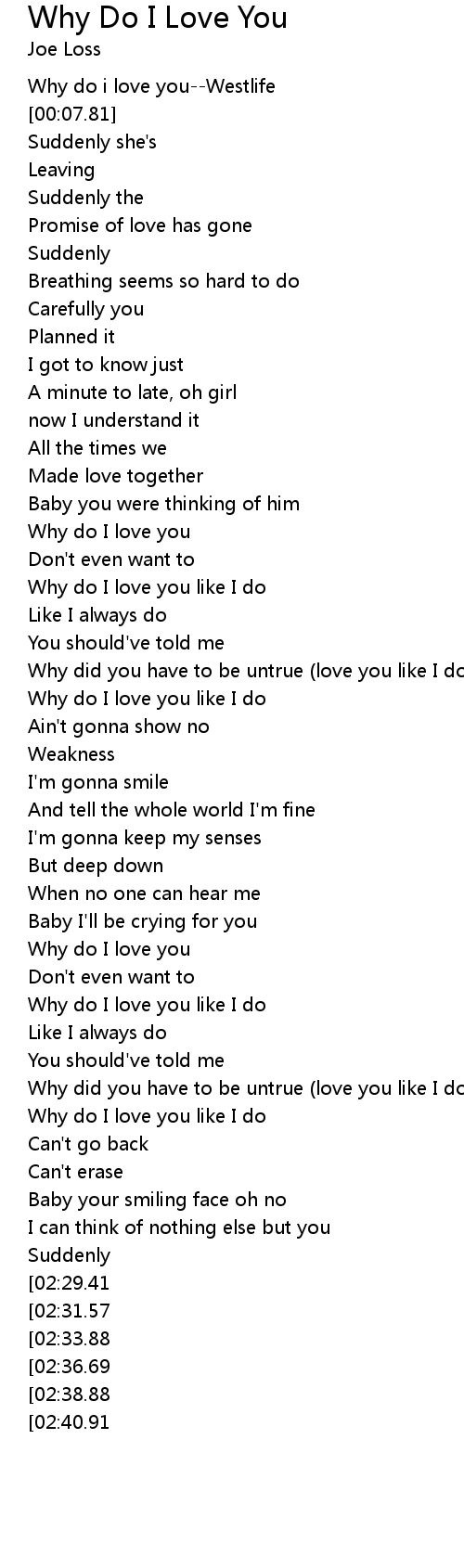 Promise of love has gone; When i got inside i said. Why do i love you lyrics: How do i love thee? Thought that i would share